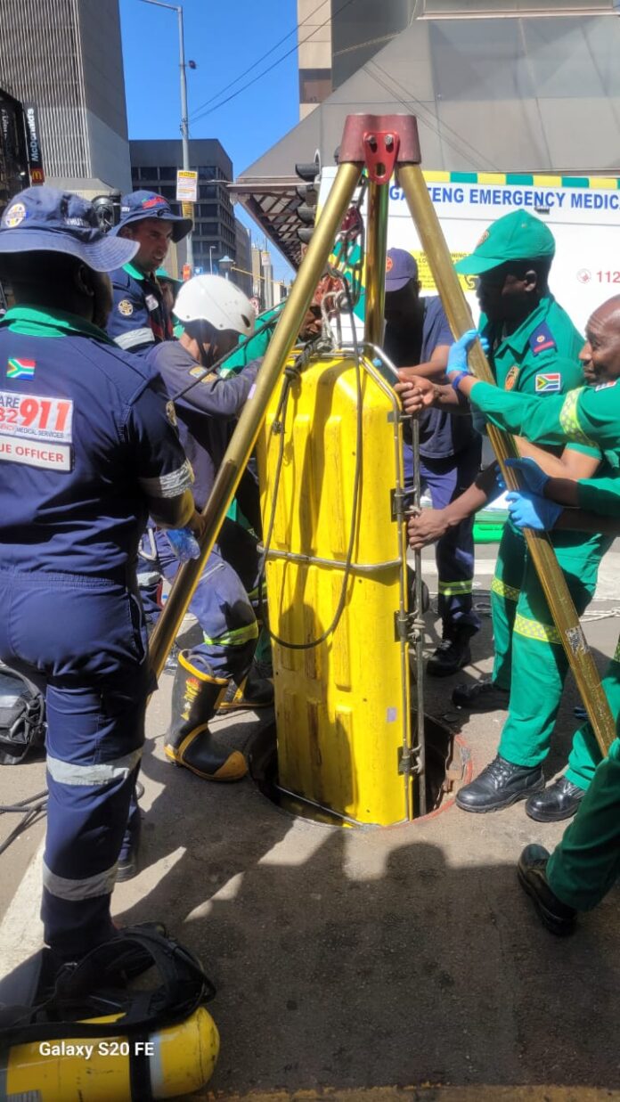 I-City of Johannesburg Emergency Management Services (EMS) iphendule esigamekweni esibandakanya abasebenzi abahlanu benkontileka yakwa-Solid Management abebebhajwe emgodini ngesikhathi besebenza.